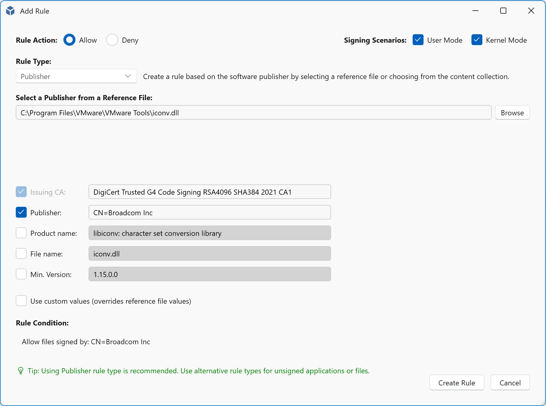 App Control policies can be created from audit of block events or they can be created manually. All app control rule types are supported. This dramatically reduces the time and effort required to implement application control securely.