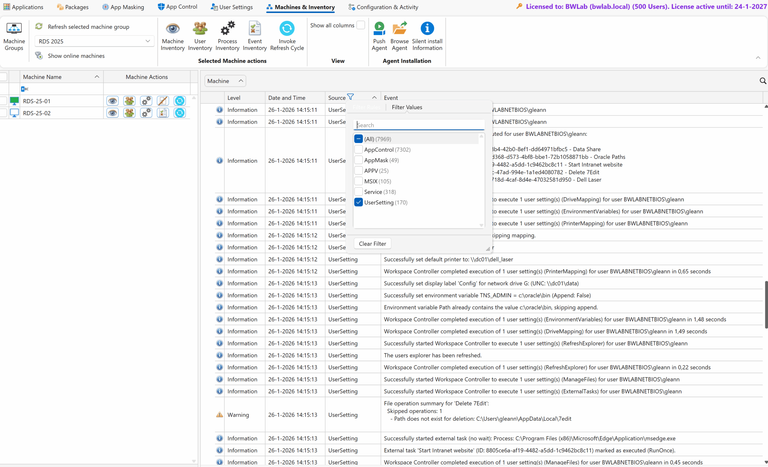 The event inventory now includes powerful new filters, making it easy to search, isolate, and analyze events, so you can instantly get a clear picture of all applied settings and actions across your environment.
