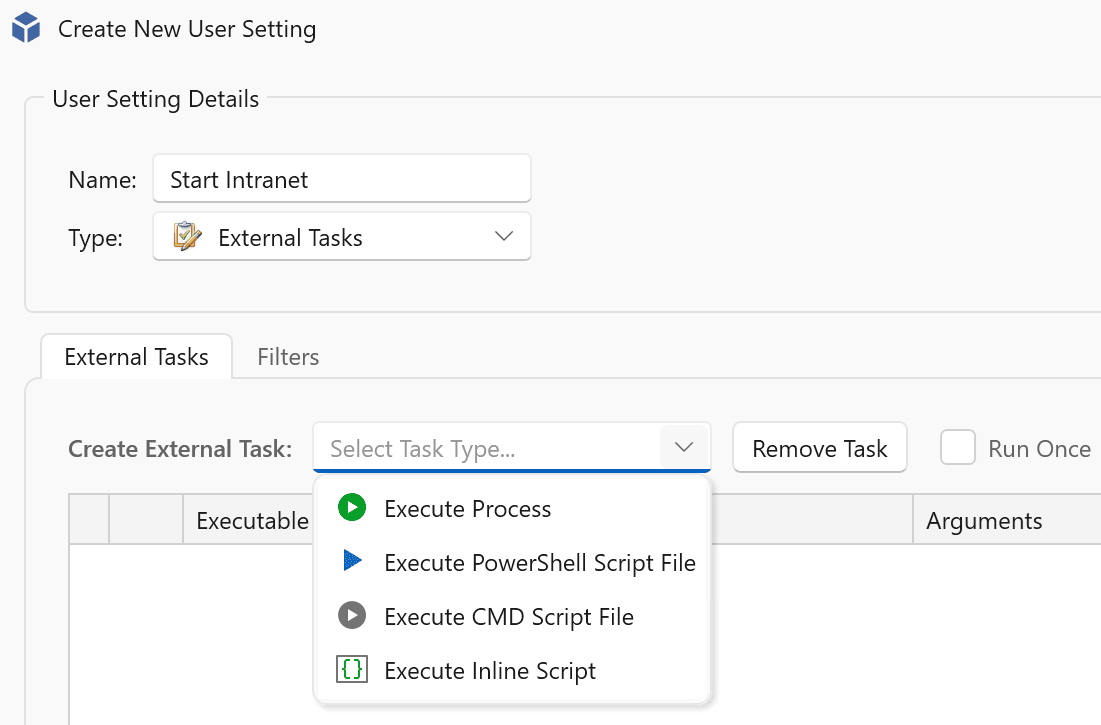This enables full control over the user workspace without the need for complex scripting or multiple tools. The feature integrates seamlessly with our App-V and MSIX application delivery capabilities.